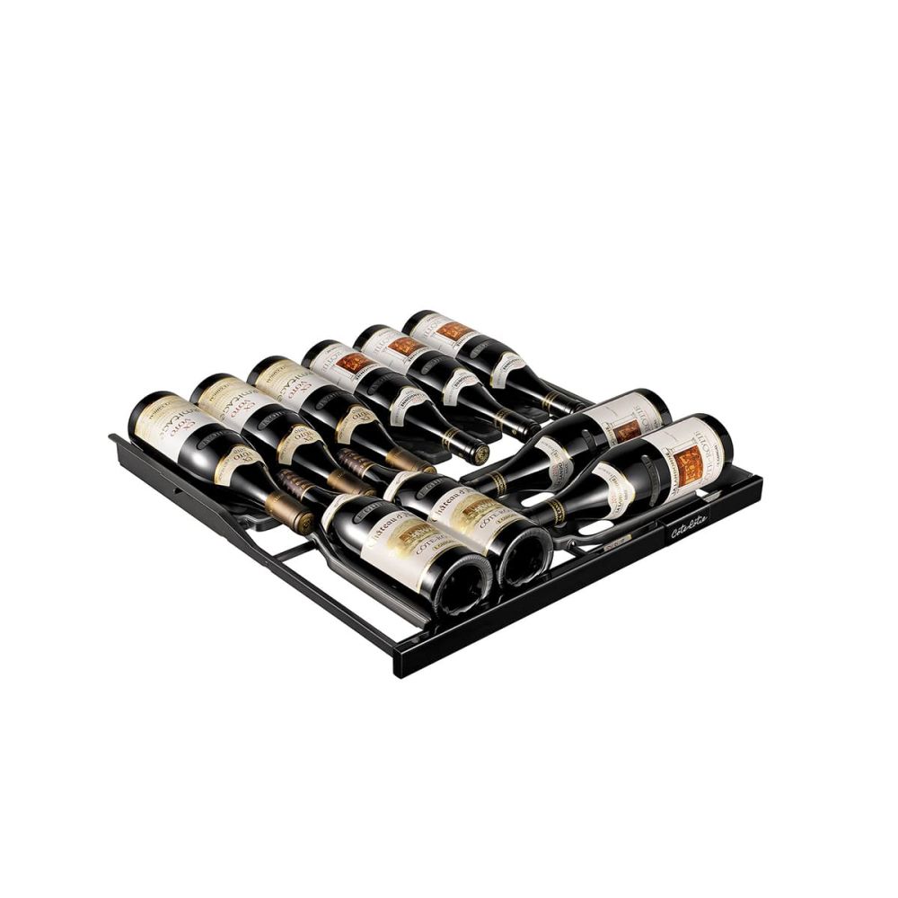 Grâce aux 2 berceaux qui se positionnent à l'avant d'une clayette coulissante*, choisissez librement la présentation de vos bouteilles : horizontale face étiquette, plutôt à droite, centrée ou à gauche.
