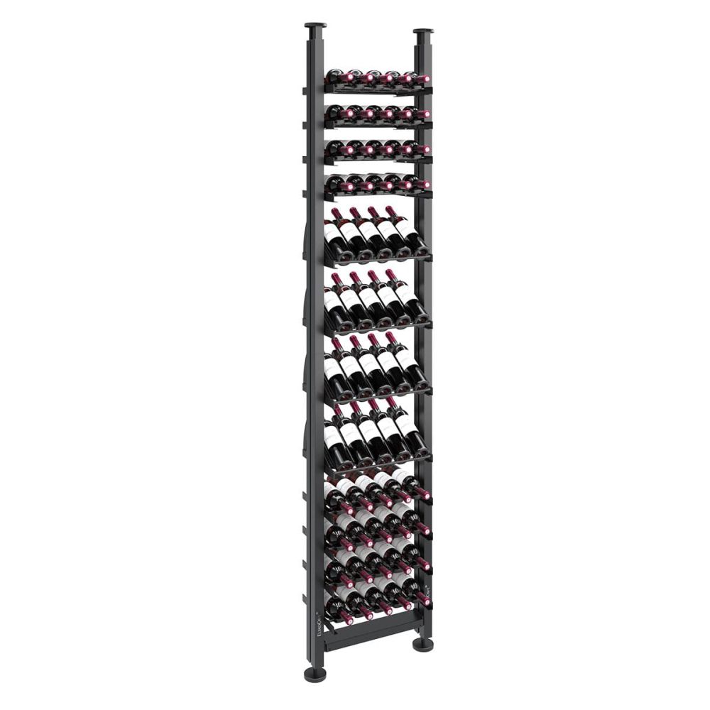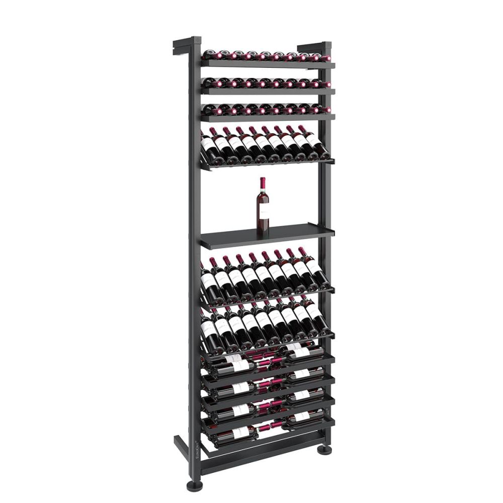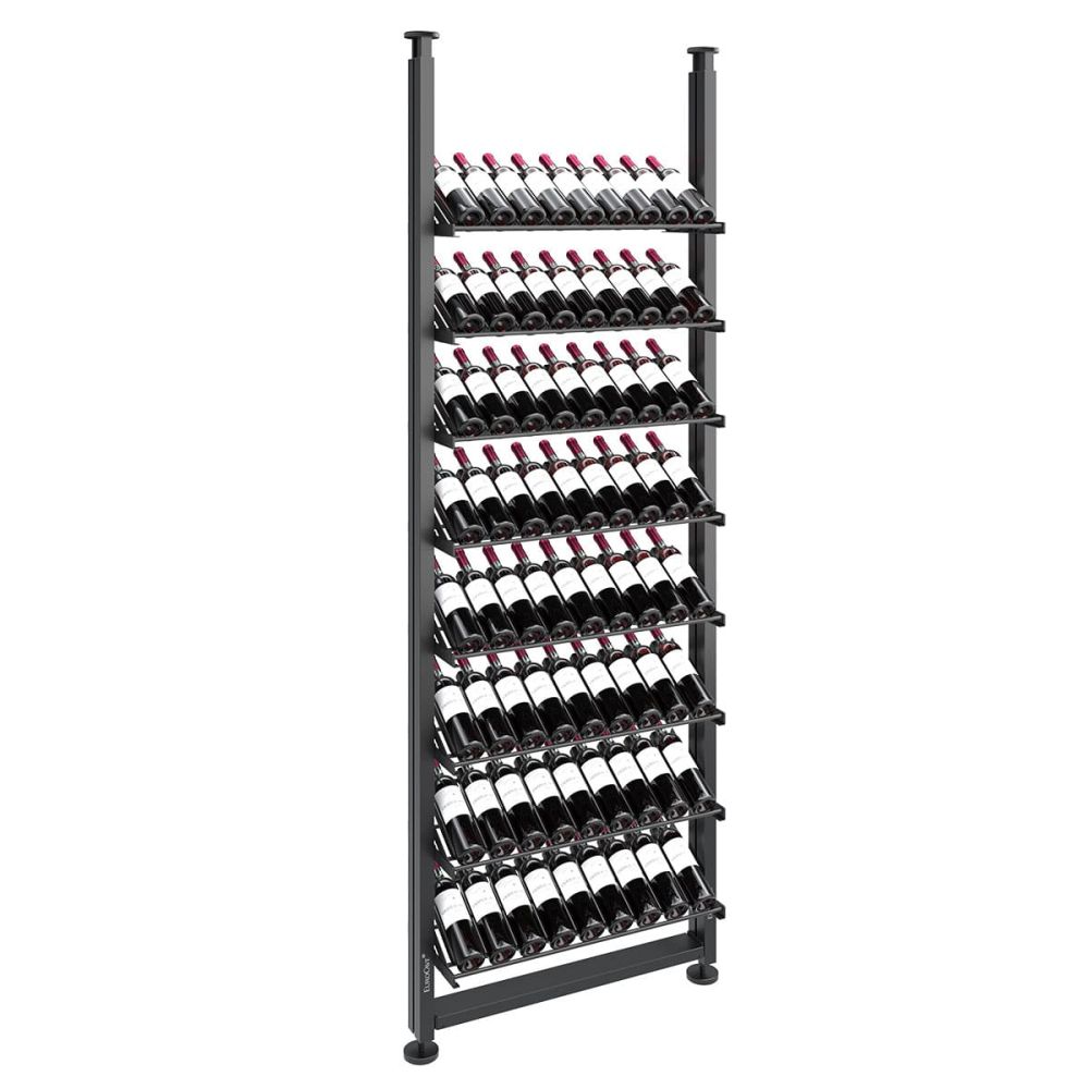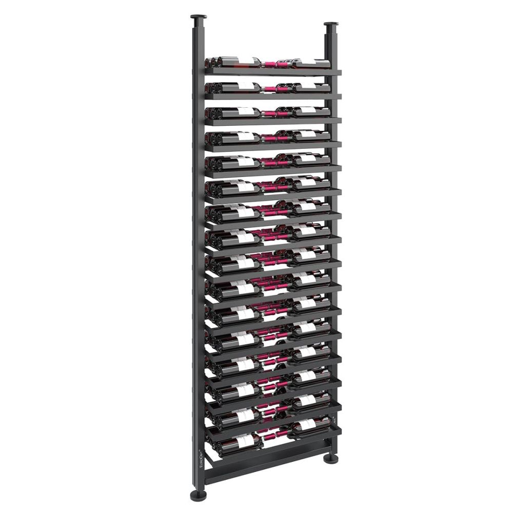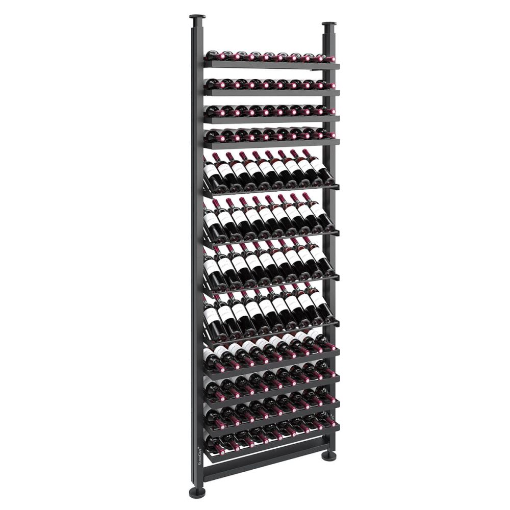 Pour une colonne de 2,85 m de hauteur : Version stockage avec 23 niveaux = jusqu’à 207 bouteilles / Version présentation inclinée avec 14 niveaux = jusqu’à 126 bouteilles