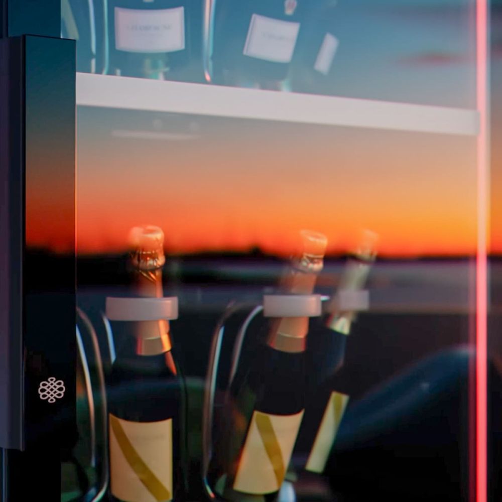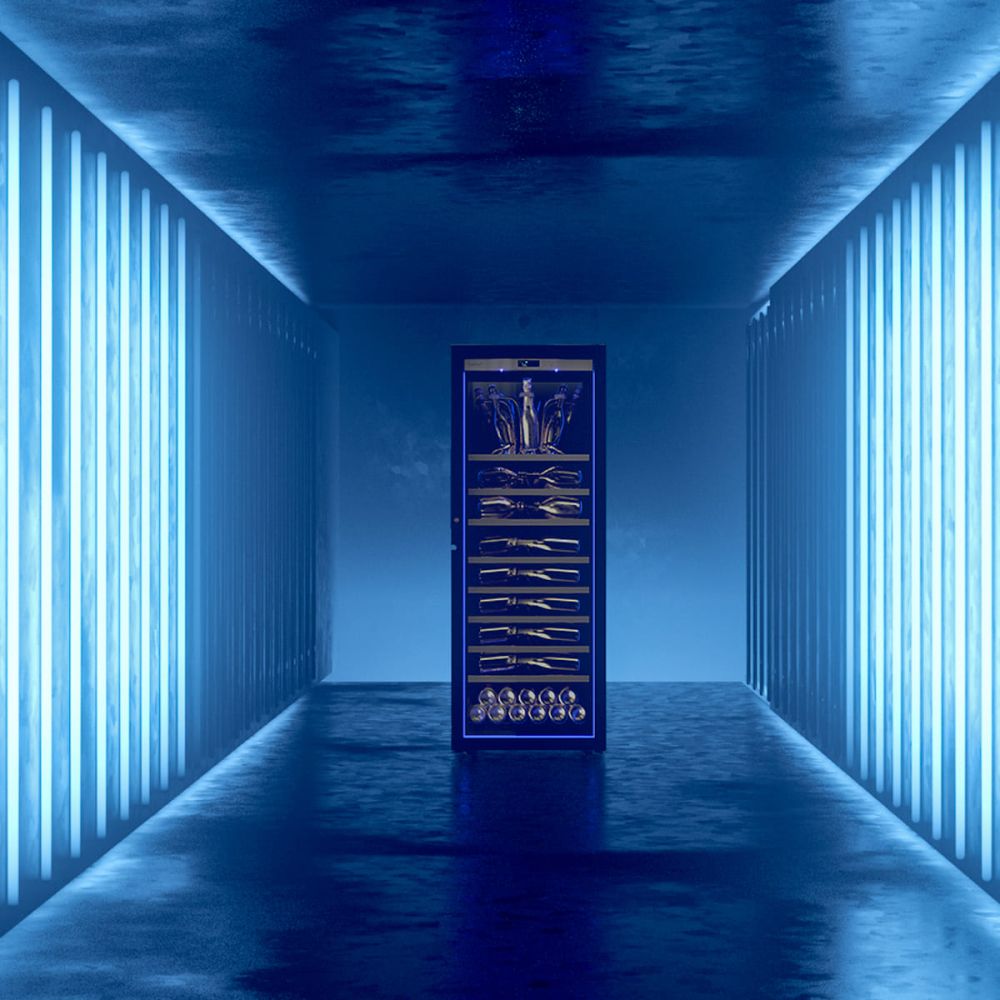 Vos champagnes sont enveloppés d’un halo ambré, rouge ou bleu, à choisir à la commande, qui se révèle tout autour du coffre, mettant en valeur de manière spectaculaire vos bouteilles.
