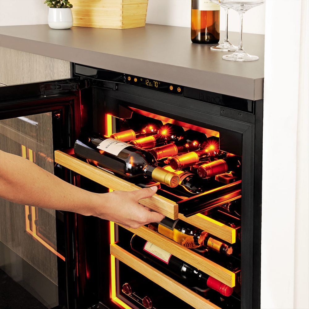 L'humidité sera maintenue à un niveau d'environ 60 à 70 % et vos vins seront protégés de toutes les vibrations, rayons U.V, mauvaise qualité de l'air, qui perturberaient sa maturation.