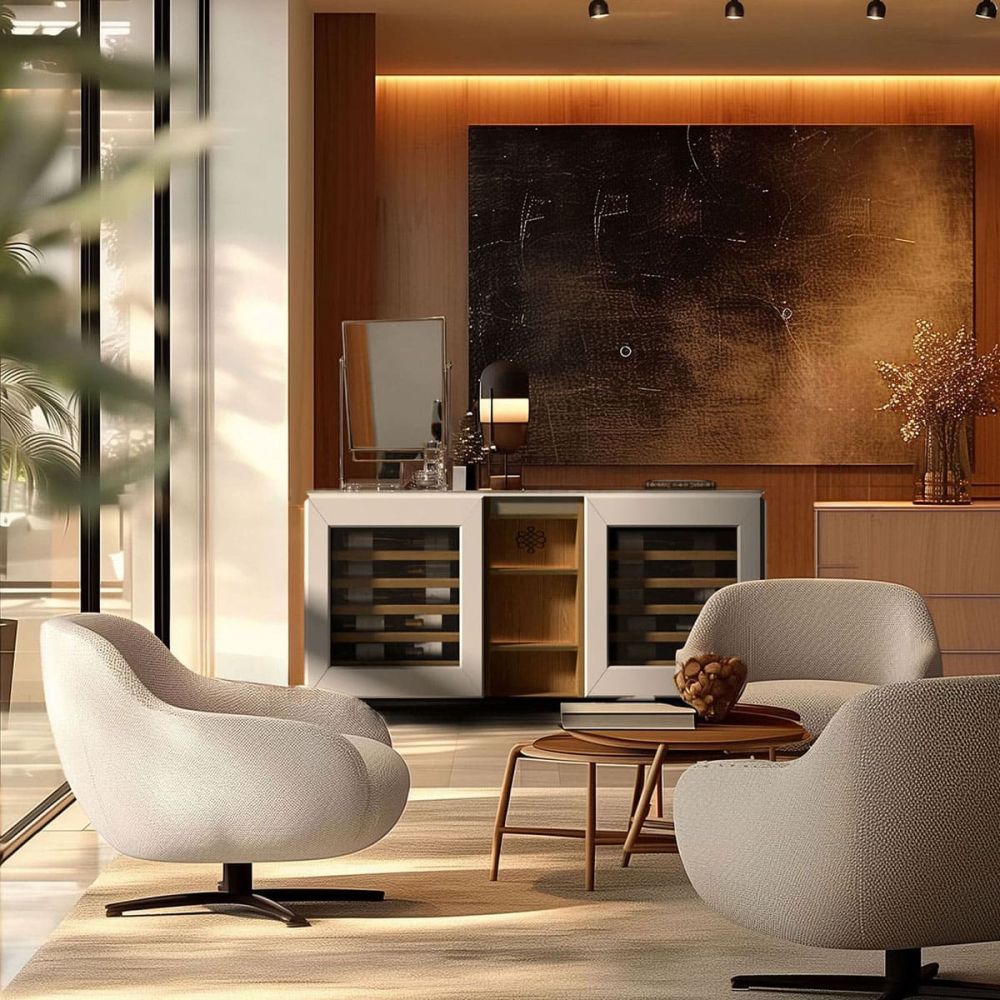 L'enfilade Harmonie se distingue par son design qui s'intègre harmonieusement à tous les intérieurs. Avec ses lignes épurées et ses finitions raffinées, ce meuble apporte une touche de sophistication à votre salon ou salle à manger. L'éclairage d'ambiance met en valeur vos bouteilles et la niche centrale, offrant le choix entre huit couleurs à l’intensité réglable.